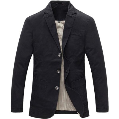 Men's Casual Three-Button Stripe Lined Cotton Twill Suit Jacket
