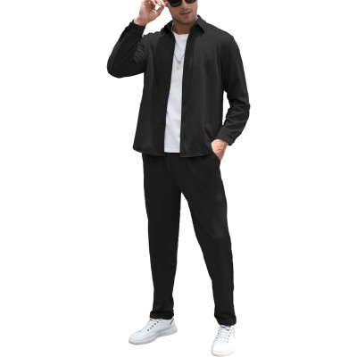 Men's Outfits 2 Piece Sets Casual Button Down Long Sleeve Shirts and Pant Sets Trendy Two-Piece Tracksuits
