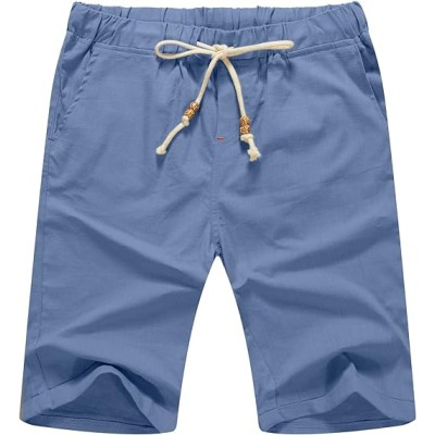 Men’s Linen Shorts Casual Drawstring Summer Beach Shorts