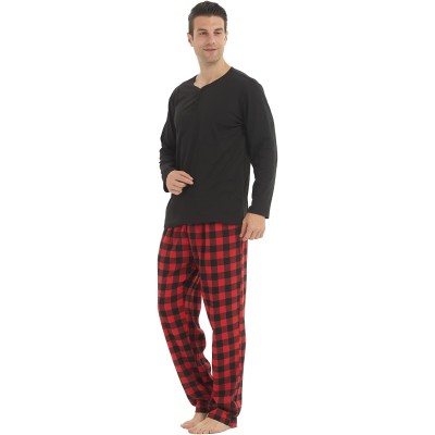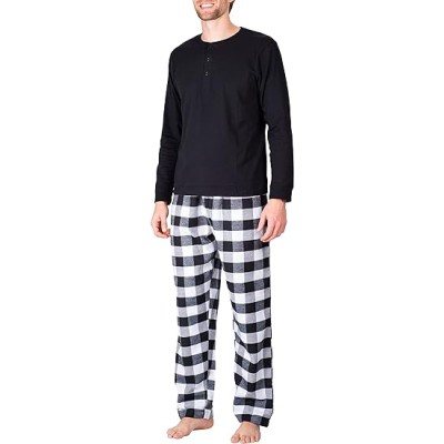 Men’s Pajama Set Pajamas For Men 2 Piece PJ Set with Cotton Flannel Men Pajama Pants and Long Sleeve Henley T-Shirt