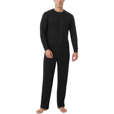 Men's Soft Knit Pajama Sets Comfy Sleepwear Loungewear PJ Top Long Sleeve Bottoms Pant with Pocket Meditation M23/M100
