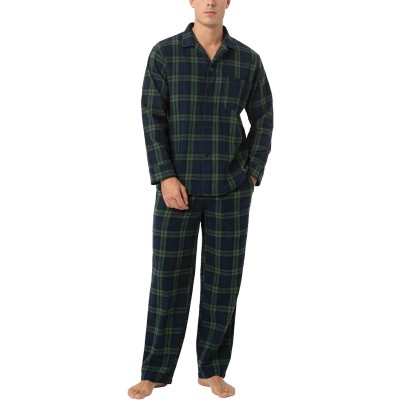 Men's Pajama Set 100% Cotton Flannel Top Long Sleeve & Bottom Pants Plaid Sleepwear PJ Sleepwear Lounge Comfy M79/M95