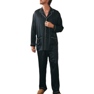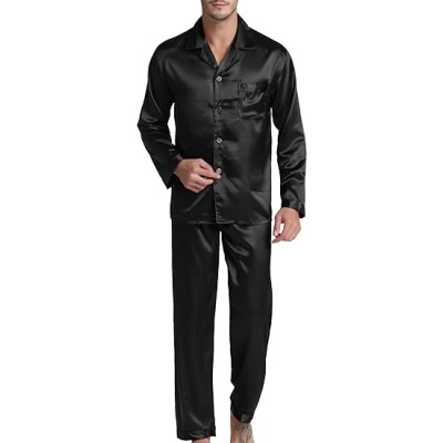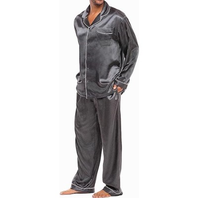 Men's Satin Pajamas Long Button-Down Pj Set Sleepwear Loungewear