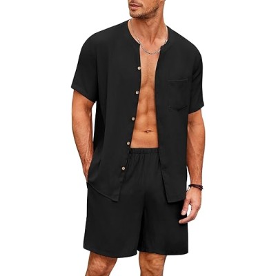 Men's Pajamas 2 Piece Lounge Sets Button Down Shorts Set Outfits Tracksuits with Pockets