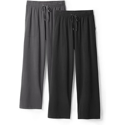 Mens Cotton Sleepwear Pajamas Pants Soft Long Bottoms, Drawstring Waist with Pockets Loungewear for Men 2 Pack