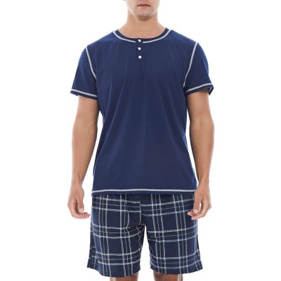Men's Cotton Short Sleeve Pajamas Sleepwear Adult Casual Shorts & Shirt PJ Set Summer Tee